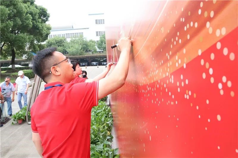 最后,南通中集兩板塊各公司管理部領(lǐng)導(dǎo)與員工在“中集日”主題背景板上簽名、合影留念,表達(dá)對(duì)中集集團(tuán)、對(duì)公司未來發(fā)展的期許和祝福。