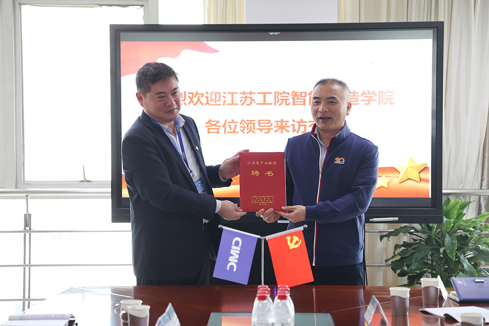 簽約儀式上,江蘇工程職業(yè)技術(shù)學(xué)院機電黨支部書記畢書博和中集安瑞環(huán)科技股份有限公司第二黨支部書記汪海平簽訂黨建共建協(xié)議書。公司陳曉春總被聘為“江蘇省產(chǎn)業(yè)教授”,江蘇工院海門校區(qū)實訓(xùn)中心主任趙斌為其頒發(fā)聘書。