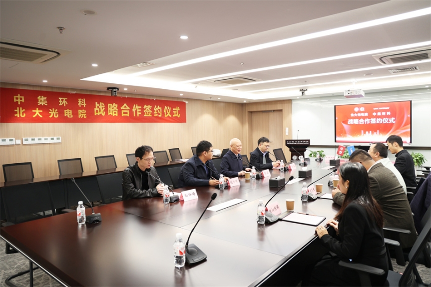 中集環(huán)科總經(jīng)理季國(guó)祥、戰(zhàn)略發(fā)展部總監(jiān)譚彥杰、智能業(yè)務(wù)部經(jīng)理徐瑋、營(yíng)銷中心品牌經(jīng)理歐陽維娜,北大光電院院長(zhǎng)李焱、副院長(zhǎng)孫泉、院長(zhǎng)助理張方醒、副研究員孫伽略共同參與并見證了簽約儀式。